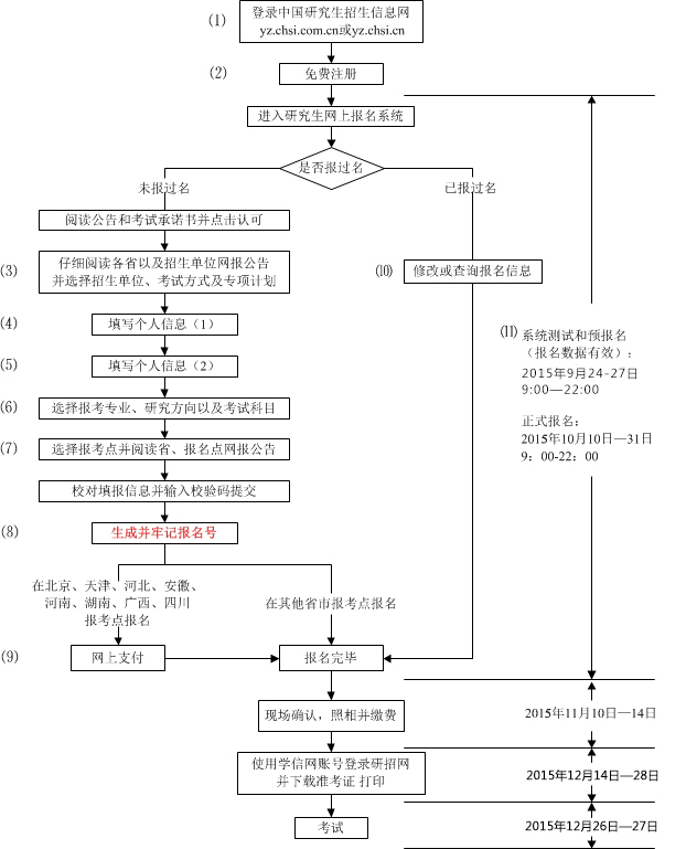 1、按照《2016年全国招收攻读硕士学位研究生简章》以及欲报考招生单位的招生简章要求审核本人资格并填报相关信息;