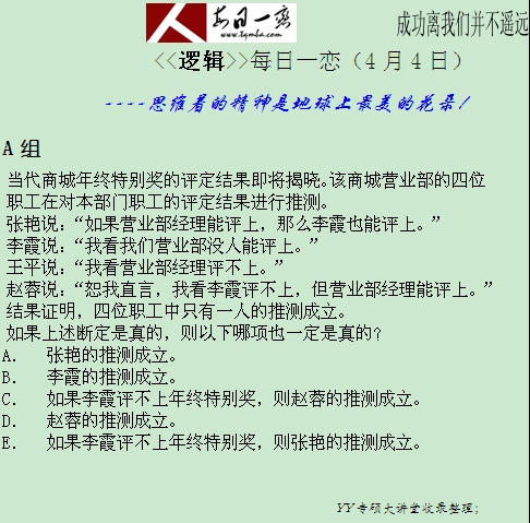 【太奇MBA 2014年4月4日】 MBA逻辑每日一练
