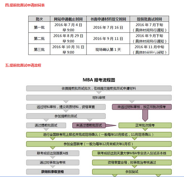 ① 提前批面试申请表:在天津大学MBA项目的网站上完成注册,在线填写申请信息,下载并打印两份,由申请者本人签字确认;